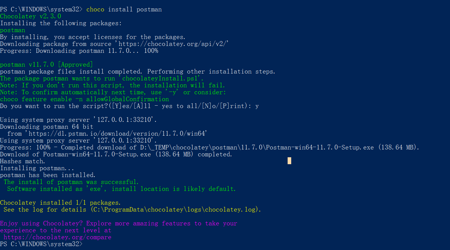 choco install postman prefix:Powershell提醒 使用 choco 进行软件升级、安装时,